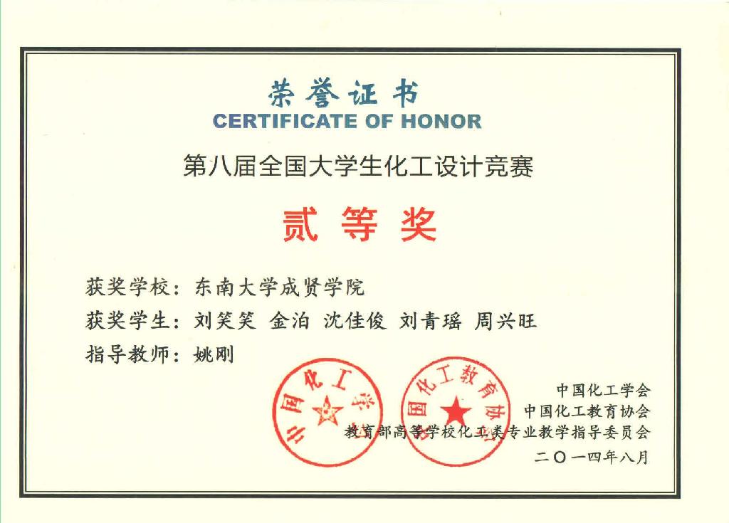 由中国化工学会、中国化工教育协会、教育部高等公司化学工程与工艺专业教学指导委员会主办,华东理工大学承办的2014年“恒逸—三井化工杯”第八届全国老员工化工设计竞赛结果揭晓,公司化工系ChemRun代表队首次参赛,喜获全国设计大赛二等奖。