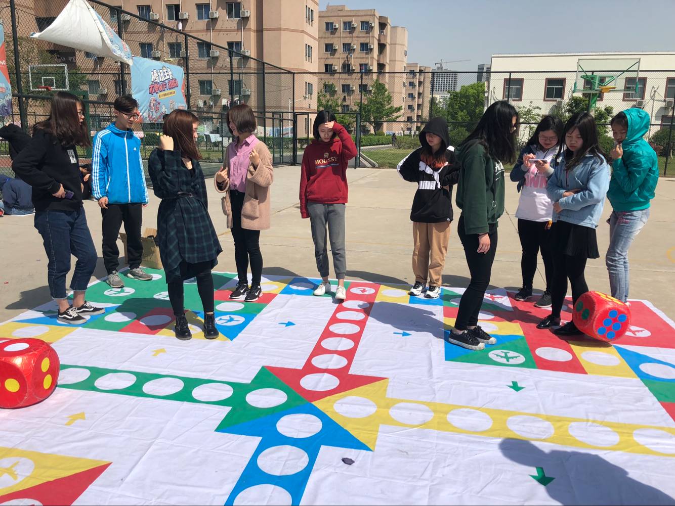 经过初赛的激烈角逐,四支队伍一路披荆斩棘,脱颖而出,顺利晋级决赛。决赛别出心裁的规则和新颖的玩法使大家情绪高涨。指压板吃甜甜圈、双人挤气球、矿泉水保龄球、套圈等各式各样的游戏环节精彩纷呈,引得路人驻足观看,现场氛围火爆,掌声不断。参赛选手们使出了洪荒之力,各显神通。最终“小仙女队”一举夺冠,“陈独秀队”获得第二名,“超毒小仙女队”获得第三名。通过丰富的活动内容和多样的活动形式同学们增进了彼此的感情,提高合作协调能力,让同学们改变对原本飞行棋过于单一的看法。最后,比赛在同学们的欢笑声中圆满结束。