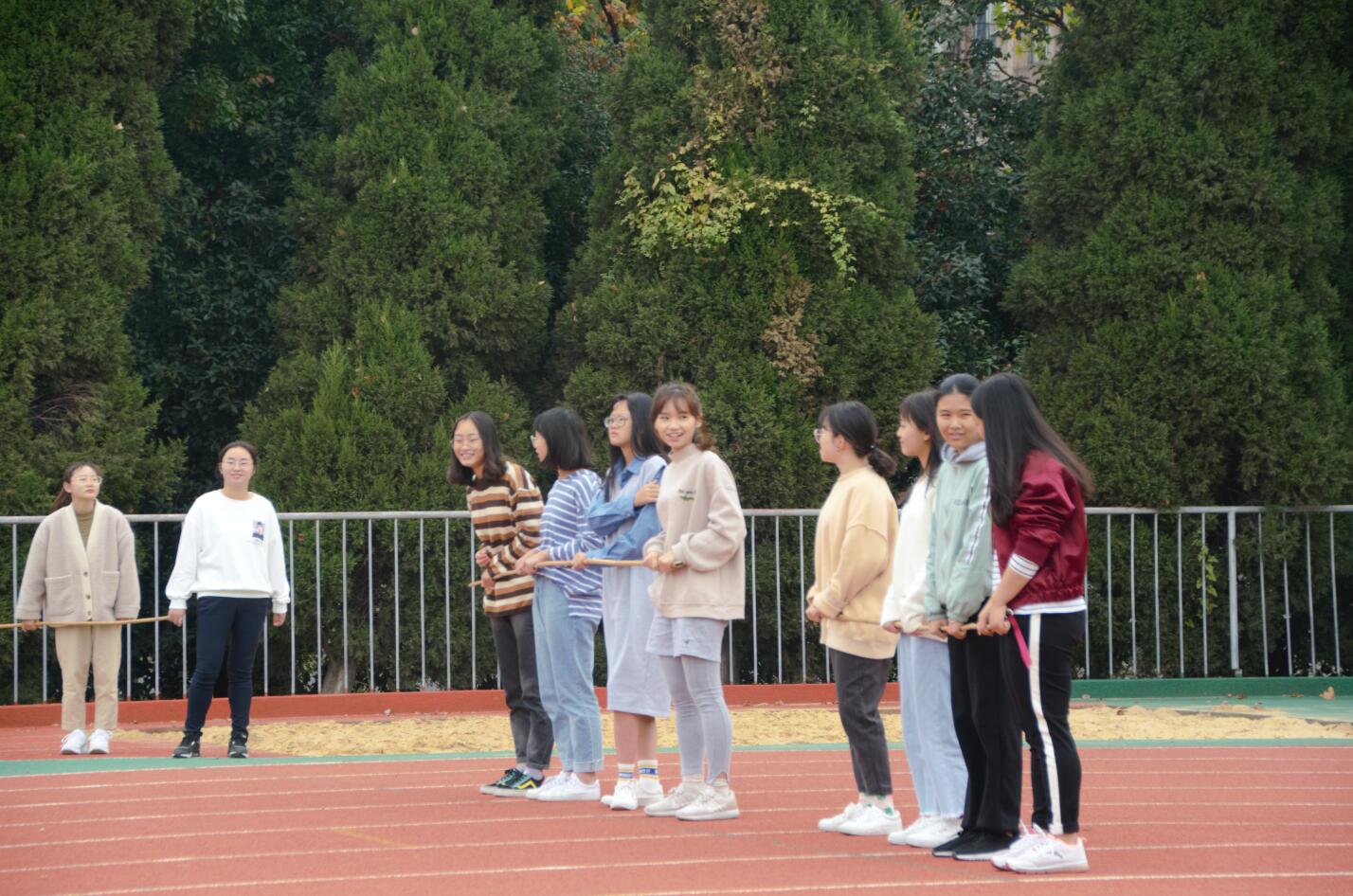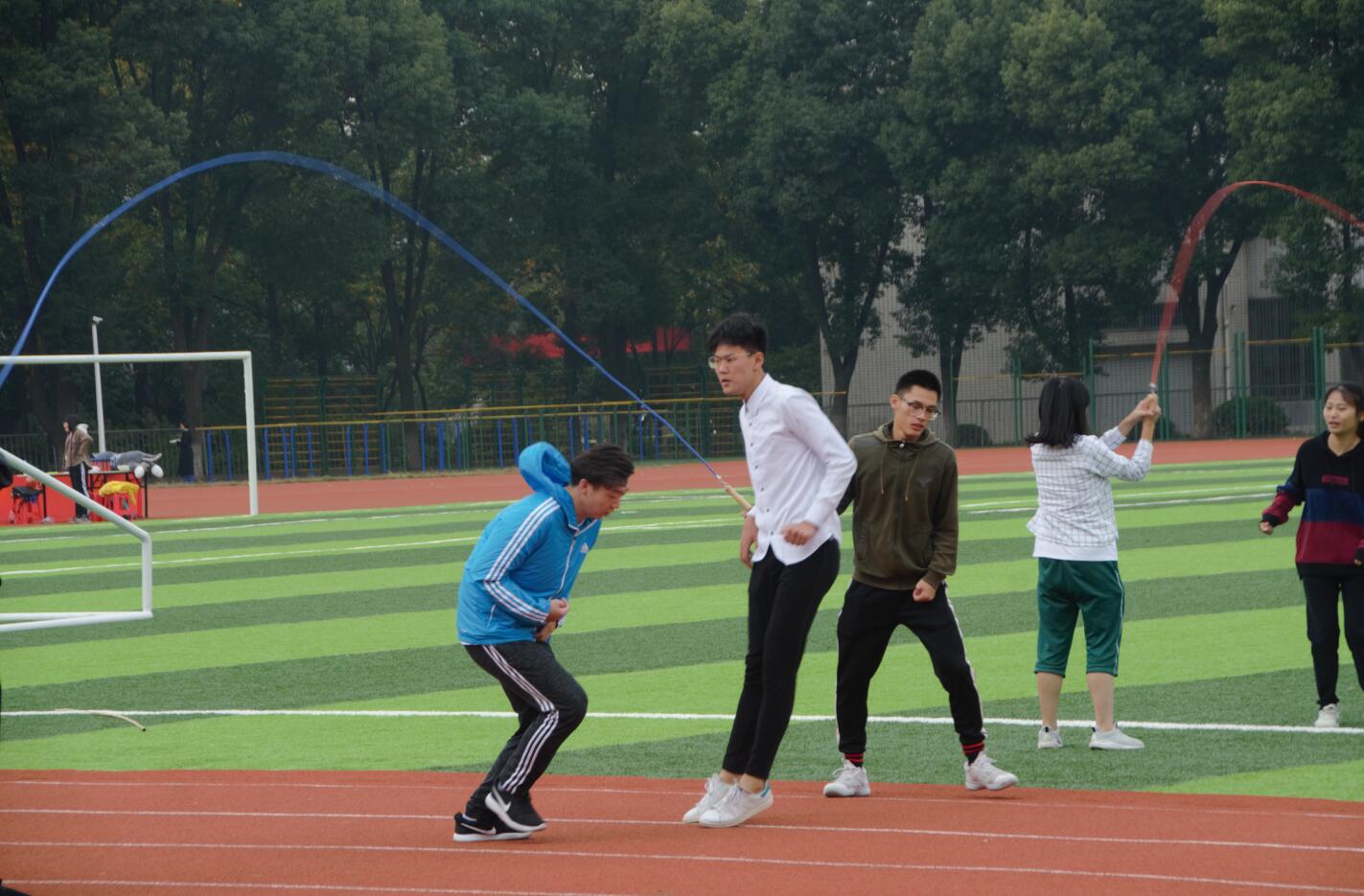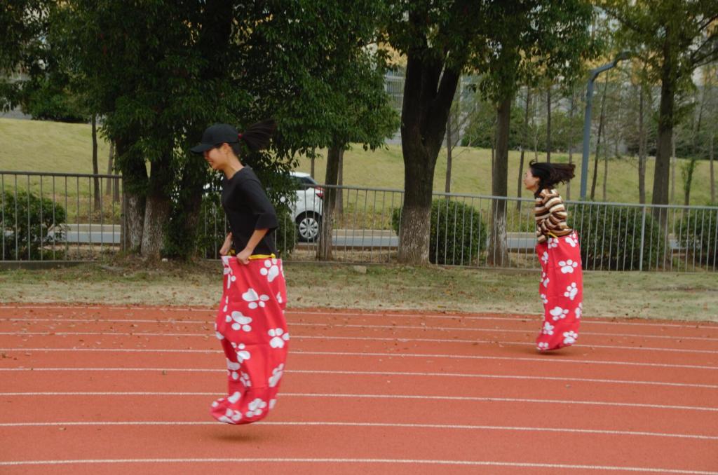 本次趣味运动会有“浪里小白龙”,“逃逸袋鼠”,“协力竞走”等趣味无穷的项目。整个运动会气氛激烈又不失轻松愉快,参赛同学们拼尽全力完成每一项项目,全身心地投入在比赛中,观众们在一旁加油呐喊,同学们将青春的光芒发挥到极致,齐心协力冲向终点!