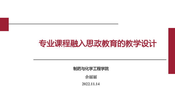 刚刚参加完全国高校教师网络培训中心和新华网共同主办的“课程思政高质量推进”研学周(第三期)专题培训的余丽丽老师以“专业课程融入思政教育的教学设计”为题做了主题报告,报告分为两个部分,第一部分她首先分析了课程思政所蕴含的理念特征及思政与专业课程融合需要达到的标准,然后基于BETVLCTOR伟德国际1946的专业及学科特点,重点介绍了理工科类课程结合专业特点推进课程思政建设的要点及面临的困难与挑战,并提出了化学类课程开展课程思政的总体思路:一条主线、两个同步、三个阵地、四维矩阵。第二部分以其主讲的药事管理学课程为例具体谈课程思政教学设计。她首先结合药事管理学课程特点,在专业课程中融入思政情感与价值,提出课程核心价值观:爱国、法制、责任,基于此核心价值观,分为三条逻辑线对课程进行整体结构设计,即教师的组织引导线、员工在“平台”参与后的“自发情感”发展线,以及情感产生和发展的心理学依据和效应分析主线,并从课程思政资源库建设、课堂内活动、课堂外活动、研究、传播五个方面对课程进行了整体内容设计。随后,教师与辅导员进行了热烈的讨论交流,互相分享如何在日常教学及管理工作中做到生为首位、课比天大。