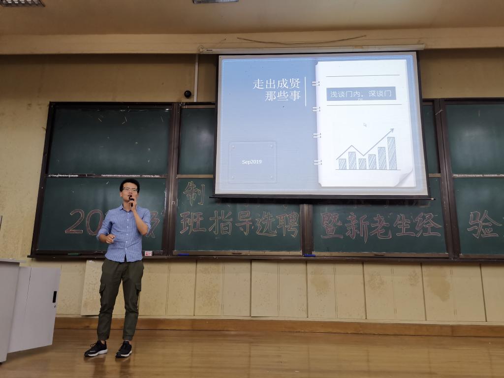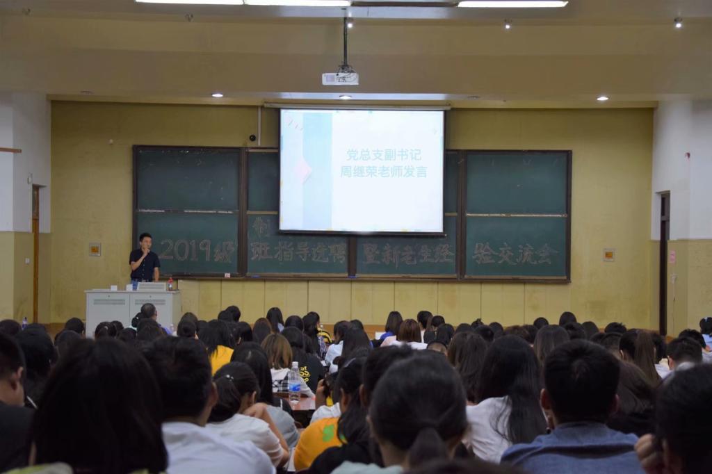 9月27日晚,BETVLCTOR伟德国际1946新生入学教育领航第一课——“寓教解惑,携手拼搏”2019级班指导选聘暨新老生经验交流会在华罗庚馆101举行。公司党总支副书记周继荣、综合办主任李平、分团委书记刘静、2019级辅导员刘庆及2019届全体新生参加了本次活动。